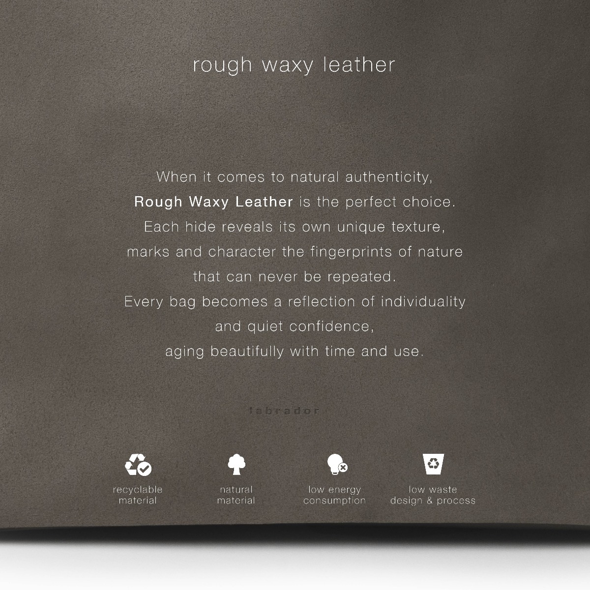 Inspired by the simplicity of nature; Labrador products are elaborately craft-made, under the concept ‘Truth to materials’. To expose the senses of real feeling: touching and appearance. We believe that the nature of materials should not be hidden. The materials used are particular selected, the full-grain aniline leather was particularly selected at its best quality, which enables us to maximise the use of the materials and cause less waste.
